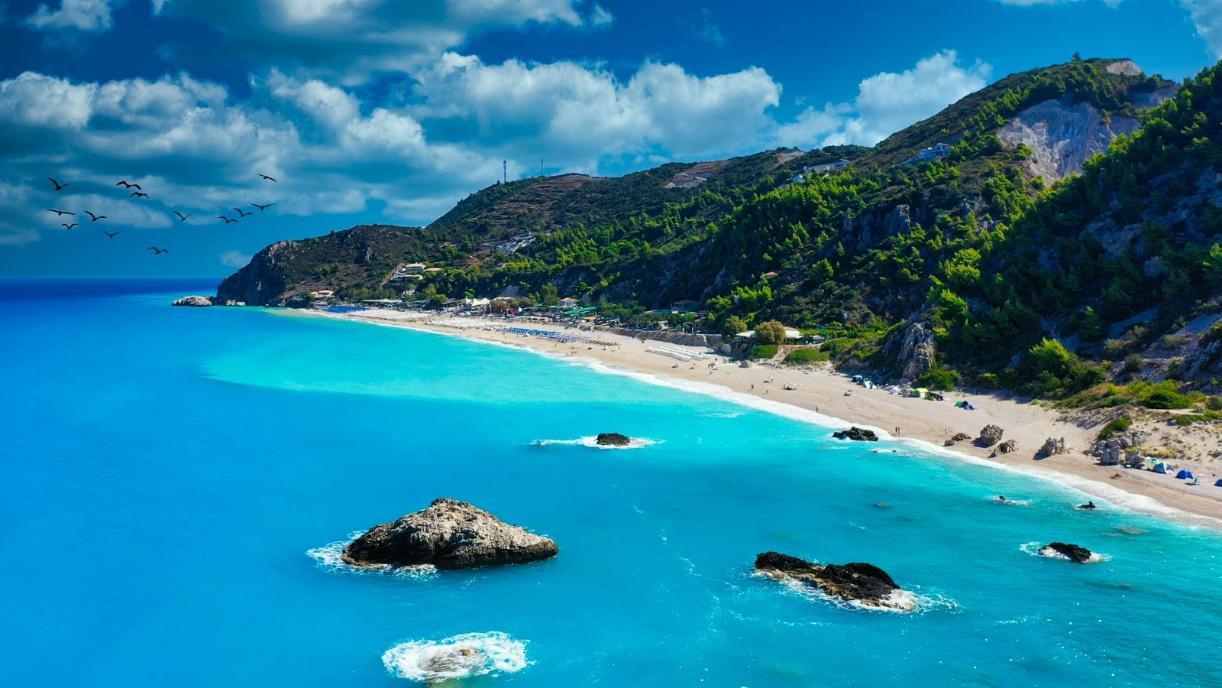 Located 17km southeast of the main town of Lefkada, one of the longest beaches of the island. The mountains combined with white sand and turquoise waters, makes it the ideal place to be.