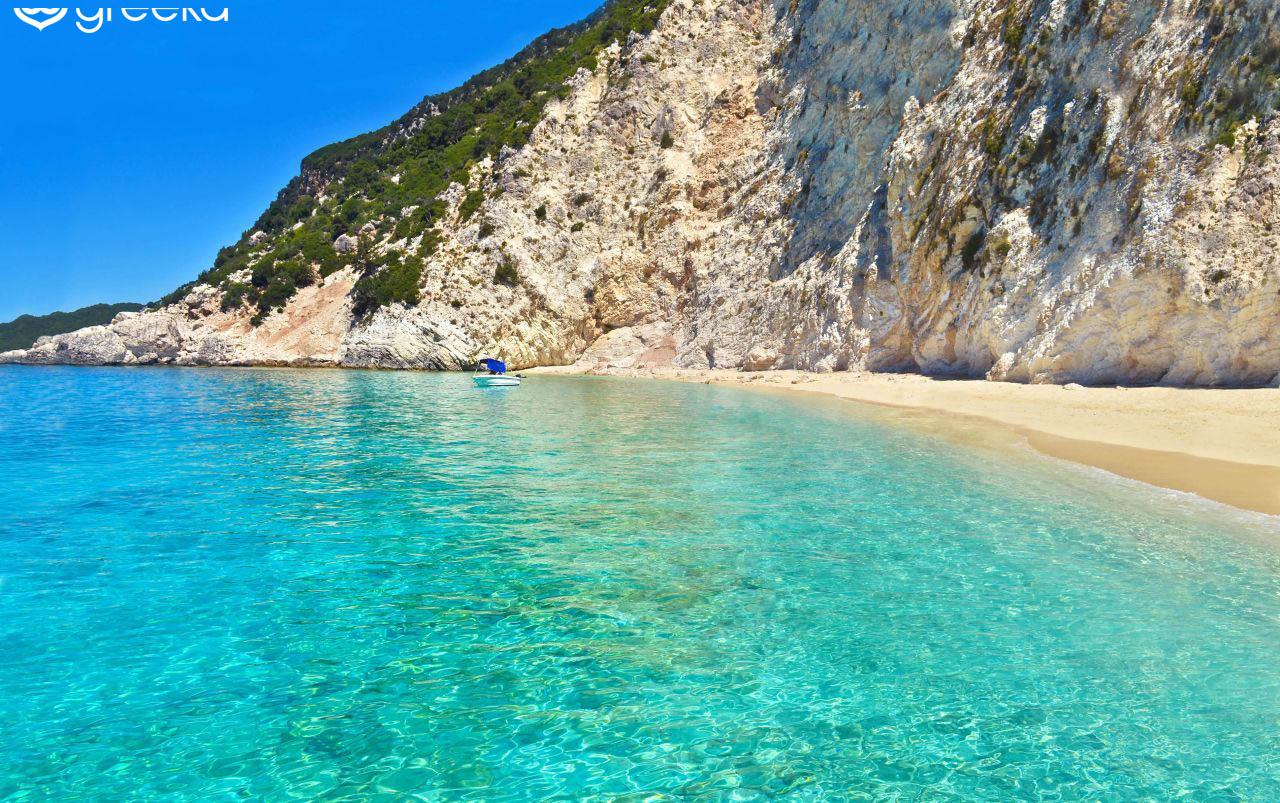 An isolated beach in Ithaca island, accessed only by boat. The perfect place to relax and enjoy the crystal clear waters.
